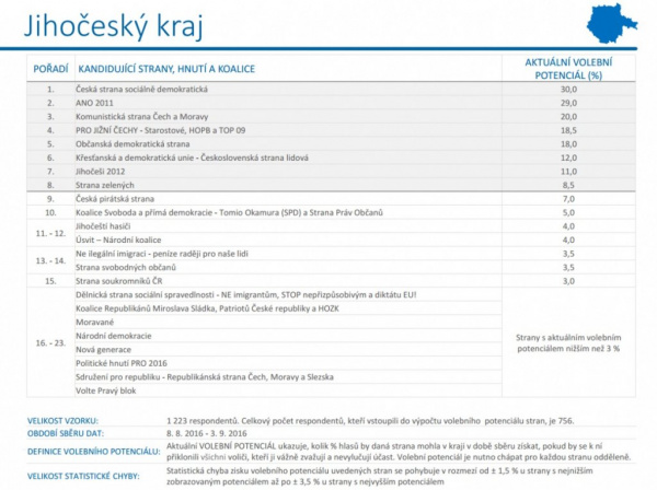 Čtvrté místo ve volbách do zastupitelstev krajů přisoudil naší koalici PRO JIŽNÍ ČECHY aktuální výzkum volebního potenciálu agentur Median a STEM/MARK